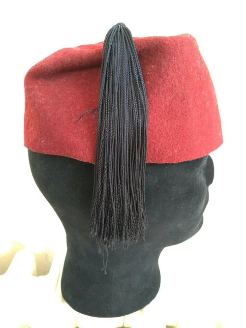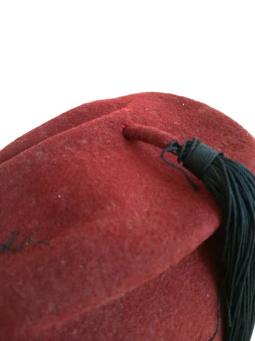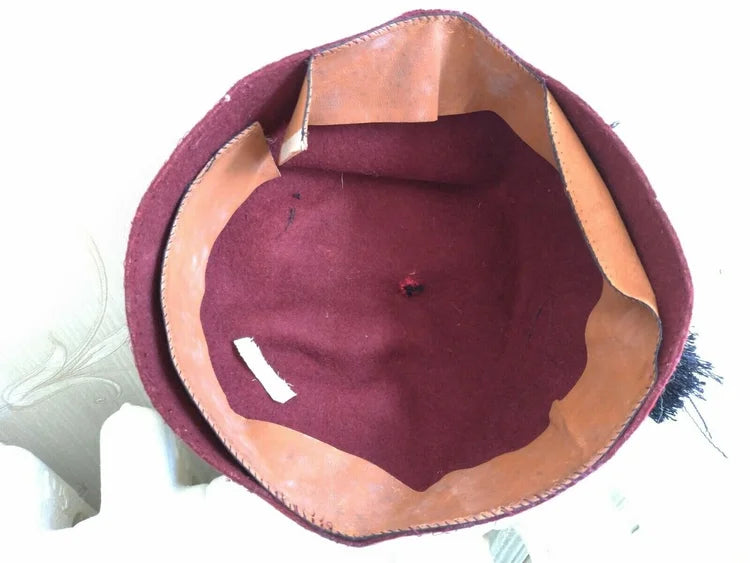 Presented here is a beautiful amaranth red fez, made by the Waffen SS for its Muslim troops from the Balkans, specifically for members of the "Handschar" and "Kama" divisions. It was recovered years ago in the UK and brought home by a British soldier who took it from a prisoner in 1945, upon the surrender of Austria. As was customary among SS troops at the time, the soldier removed the eagle and skull before surrendering and being captured.