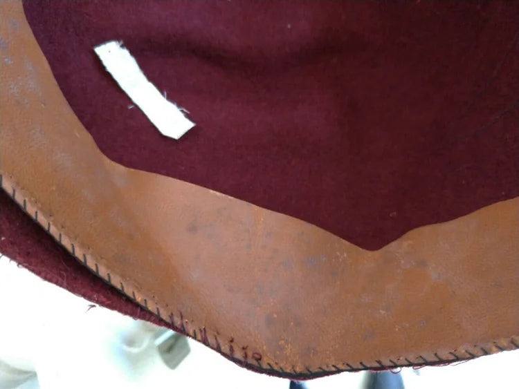 A very rare piece of clothing to find in original condition like this, worn and actually used in war. These headpieces are usually brand new, and are obviously reproductions. This one, however, is a guaranteed original; all the materials are old and there is absolutely nothing synthetic.