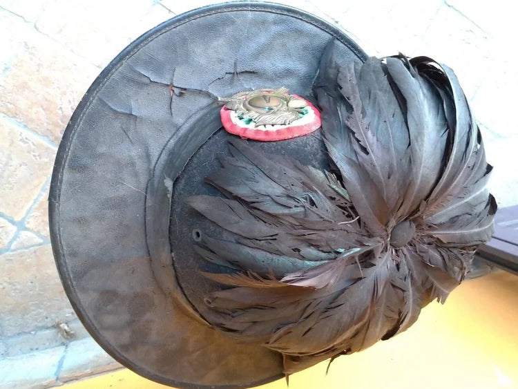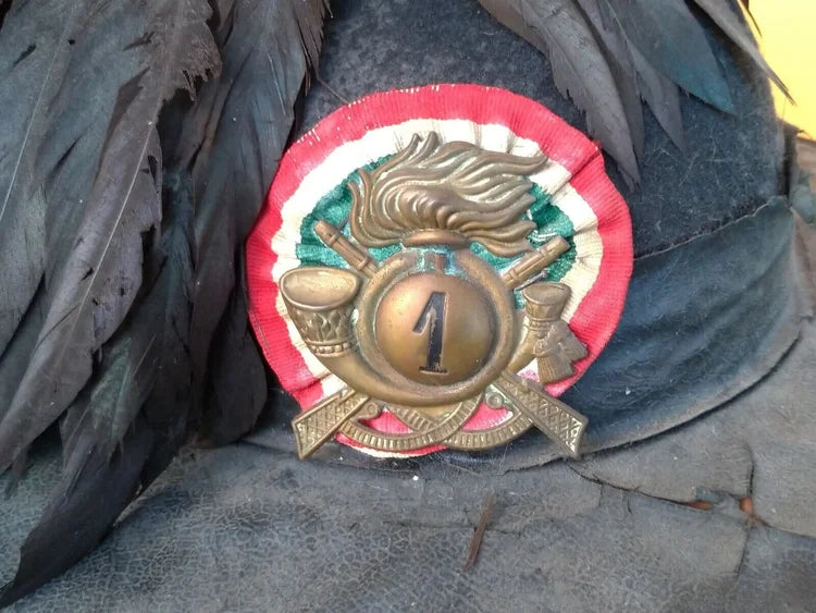 Freshly discovered Bersagliere's blackamoor from the 1st Regiment, "Garibaldi" Brigade, complete with plume, badge and cockade, all original from the period and untouched.