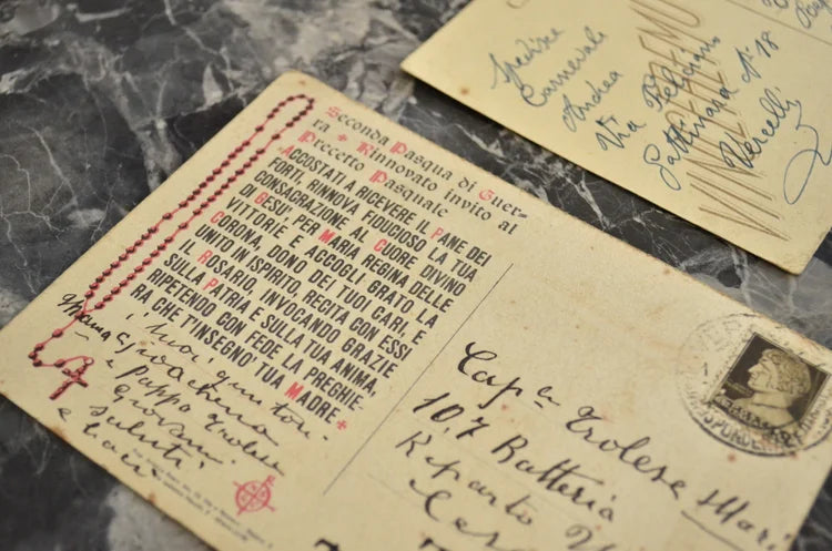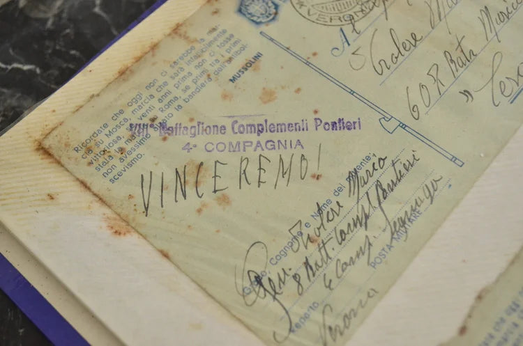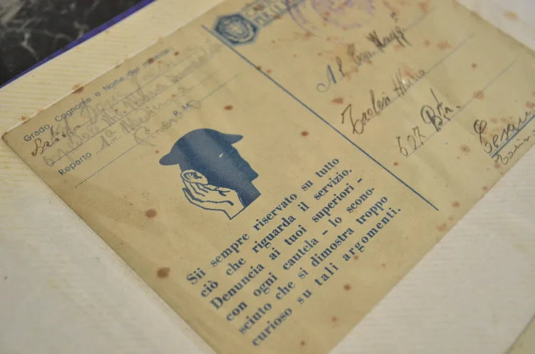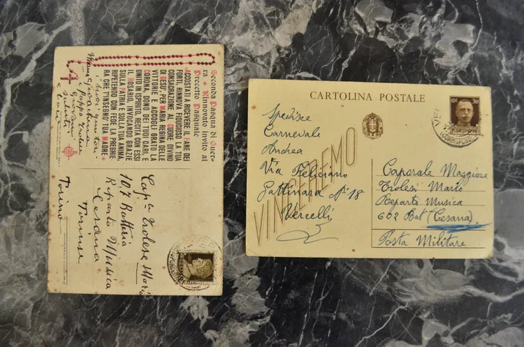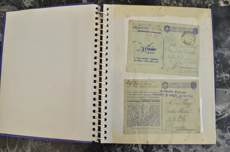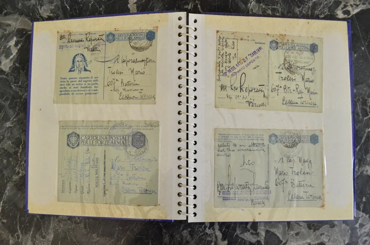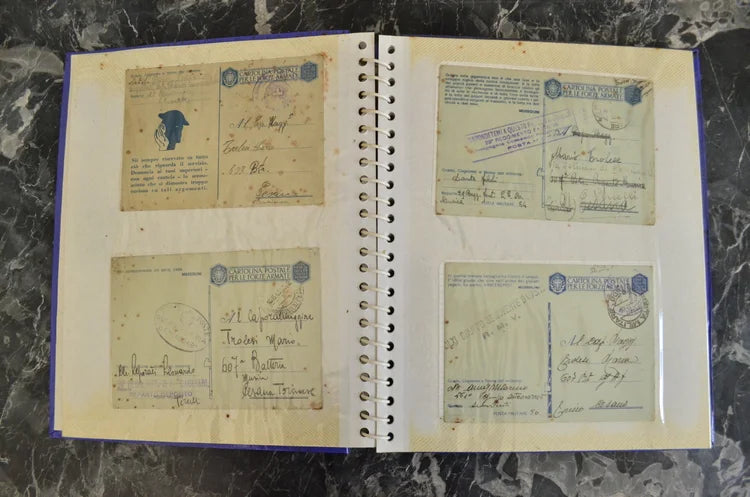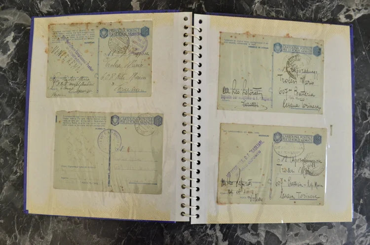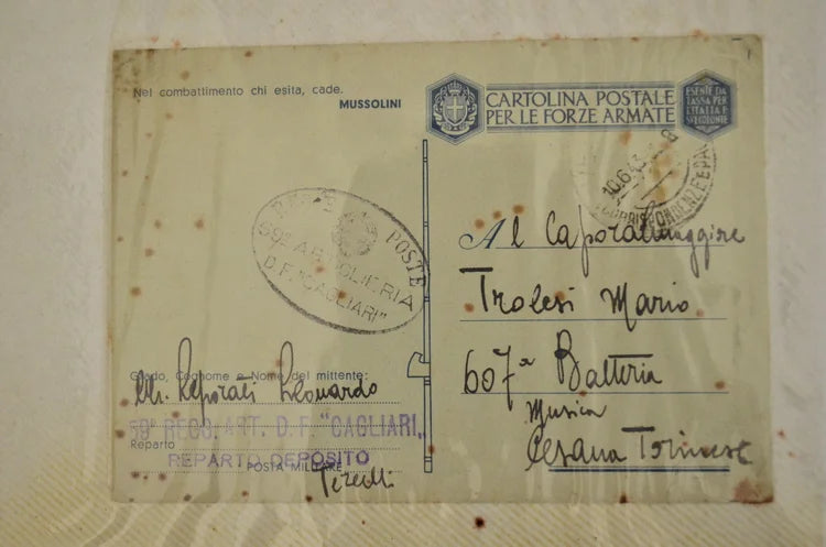 Fantastico lotto di 17 cartoline e franchigie militari tutte appartenute ad un soldato del 59° Reggimento di Artiglieria ''Cagliari'', 607° Batteria, Reparto Musica, della Seconda Guerra Mondiale.