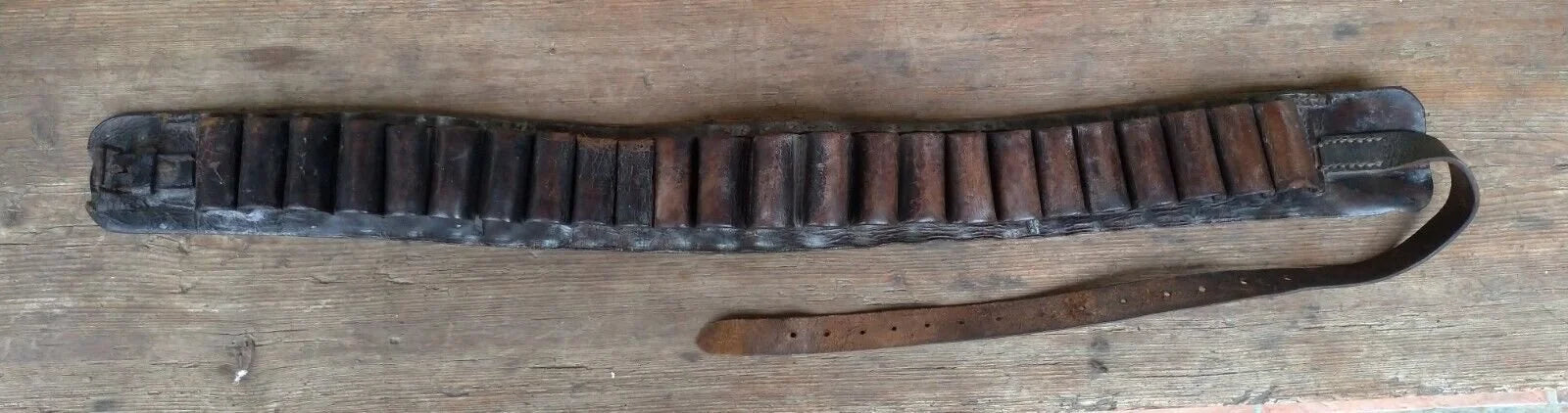Regalo insieme cartuccera Cal.12 in cuoio, trovata insieme alla giberna.