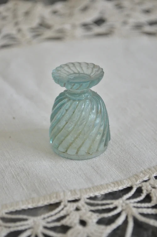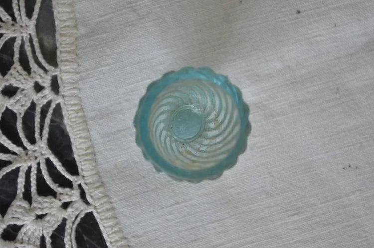 Si tratta di un antico bicchierino giocattolo in vetro risalente alla fine dell’800 o ai primi del ‘900.