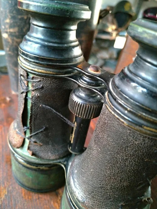 Binocolo antico realizzato in ottone e risalente alla fine dell'800. Facente parte di un lotto di materiale da ritrovamento, appartenuto ad un Ufficiale della Regia Marina del periodo Umbertino.