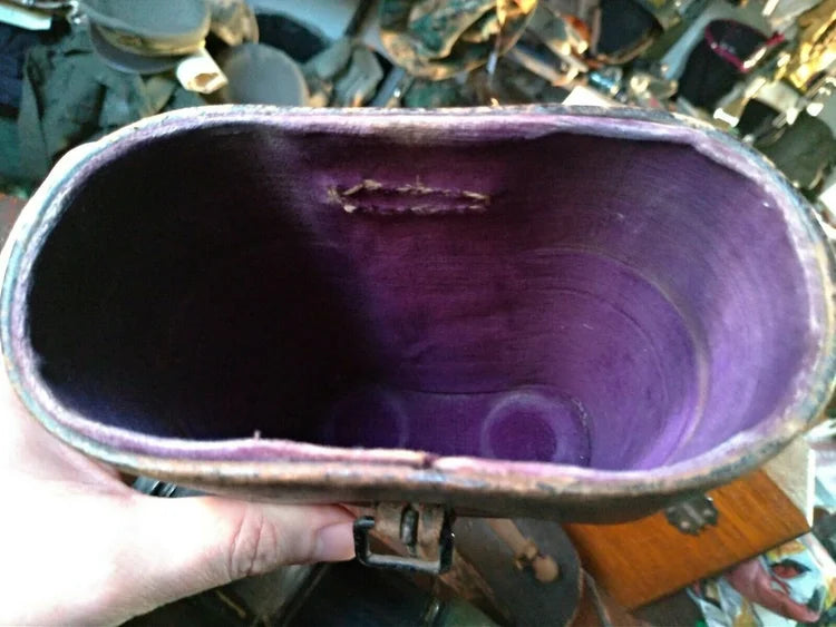 Il binocolo ha i suoi due paraluce originali d'epoca ed ha i due rivestimenti in cuoio.