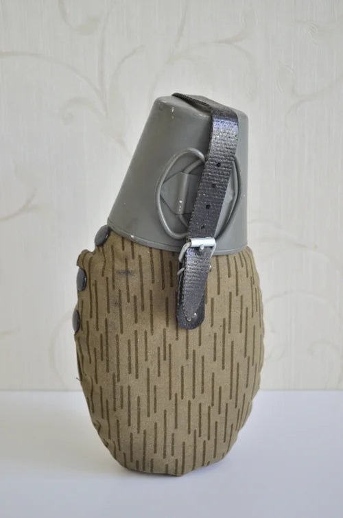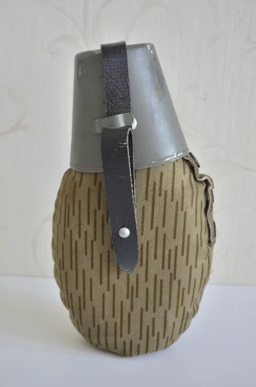 Curiosità: questo tipo di borraccia si basa sul modello utilizzato dalle truppe della Wehrmacht e della Luftwaffe durante la Seconda Guerra Mondiale. Infatti esaminando entrambi i modelli si possono notare molte similitudini.
