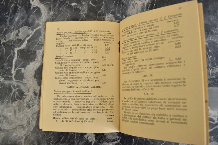VERCELLI - CONTRATTO DI LAVORO edito dalla FEDERAZIONE NAZIONALE FASCISTA per LAVORATORI AGRICOLI dell'anno 1936 e 1937.