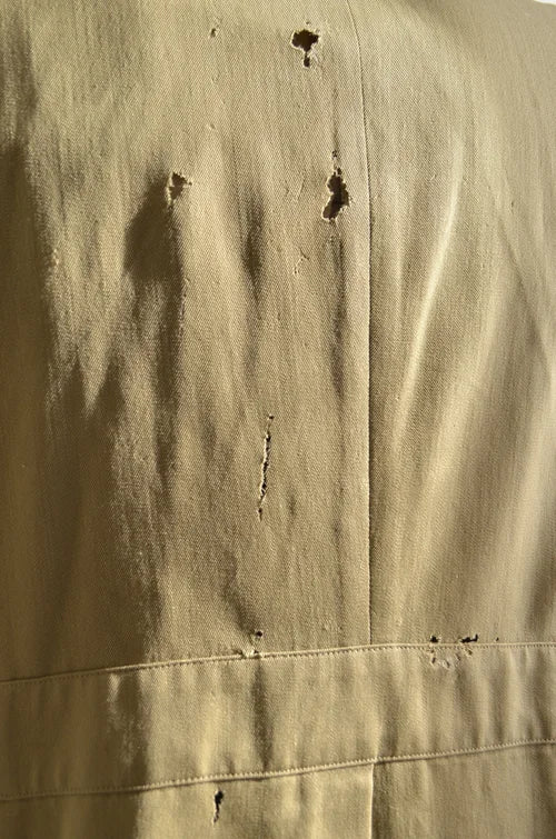 La parte frontale è in buone condizioni, mentre al retro porta diversi danni dovuti alle tarme.