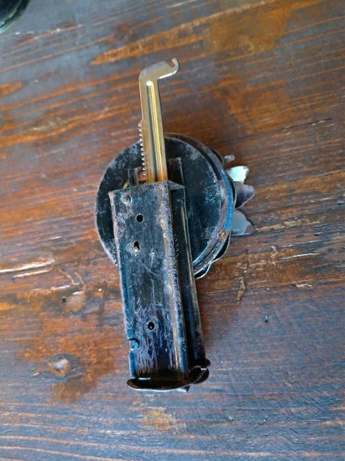 N.B. Unica mancanza è la molla che permette alla leva di ritornare indietro automaticamente; il giocattolo funziona perfettamente anche senza la molla, anche se è facilmente reperibile come ricambio. L'ultima foto caricata è stata tratta dal web per mostrare la molla mancante.