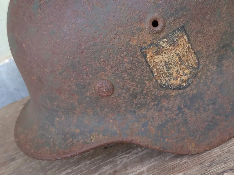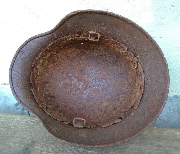 Elmetto tedesco modello M40 della Seconda Guerra Mondiale da ritrovamento.