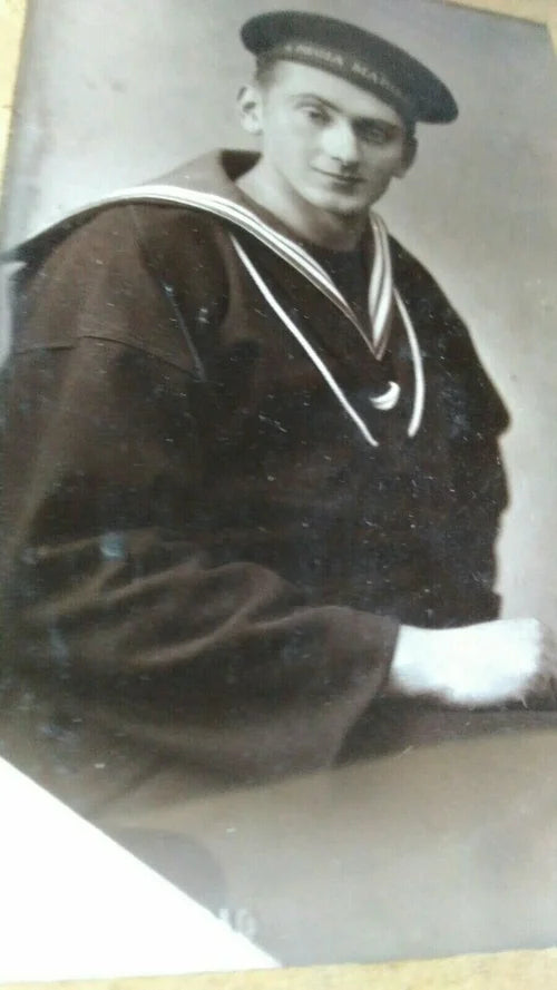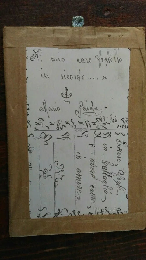 Bella fotografia raffigurante un marinaio della Regia Marina Italiana incorniciata d'epoca, messa sotto vetro e bordata con nastro telato, tutto d'epoca.