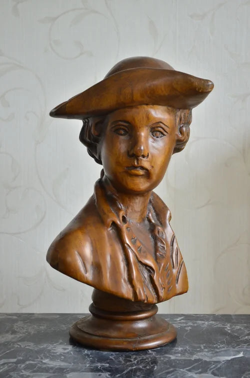 Mezzobusto in legno raffigurante fanciullo stile ‘700, realizzato a mano.