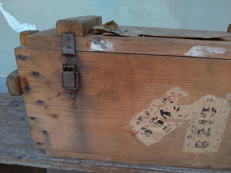 OFFICINA TERAPEUTCA ITALIANA - MILANO - MATTIOLI BELLICCHI Antica Cassa per Attrezzatura Medica in Legno e ferro.