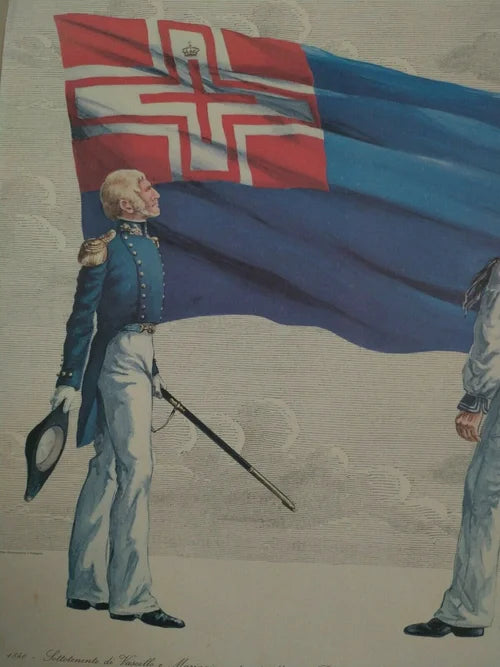 Regia Marina Sarda 1840 Sottotenente di Vascello Marinaio Bandiera 1814 1848
