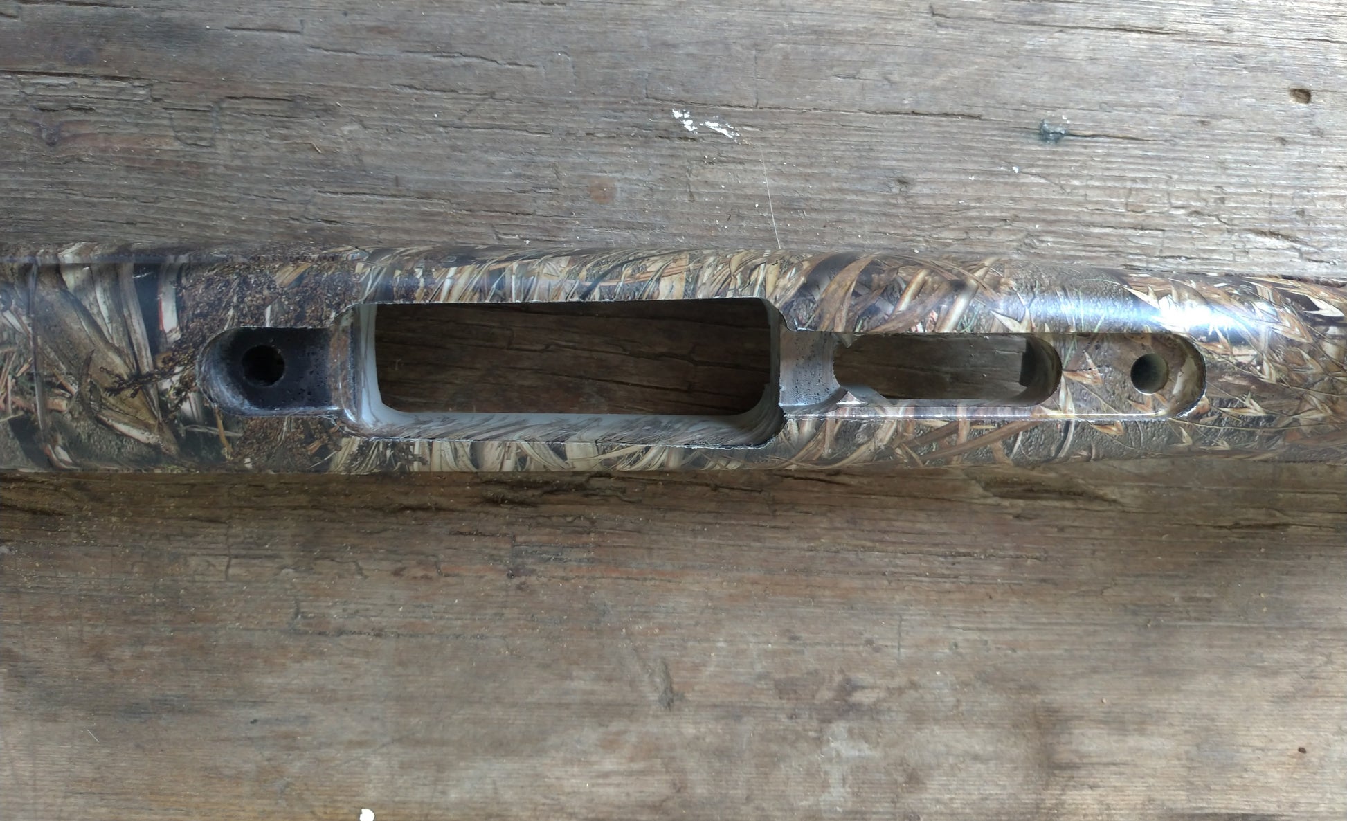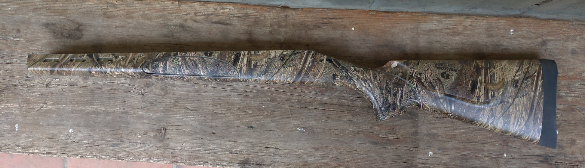 Calcio originale Remington NUOVO solo montato per prova. Verniciatura professionale Mossy Oak Duck Blind.