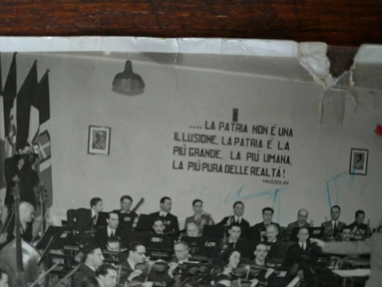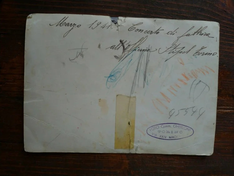 Fantastica fotografia datata e firmata '' Marzo 1941 Concerto di fabbrica all'officina STIPEL TORINO ''.
