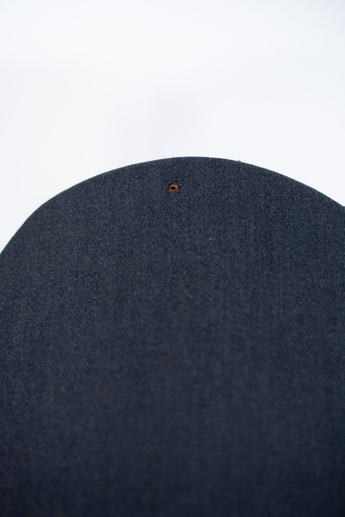 Cappello con visiera appartenuto ad un Ufficiale della RAF (Royal Air Force) del periodo della Seconda Guerra Mondiale. Prodotto in un cappellificio privato, presenta la bella ed elegante corona di Re Giorgio VI ricamata in filo dorato su fondo in velluto rosso.