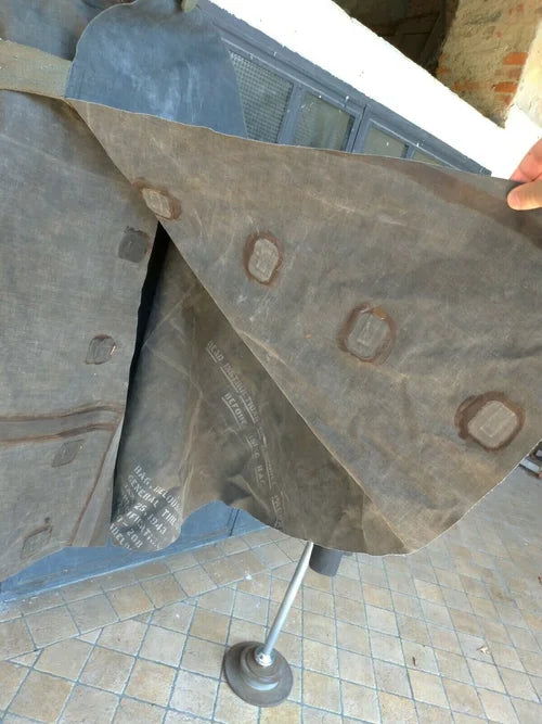 Eccezionale ritrovamento!. Trattasi di una particolare mantella realizzata in tempo di guerra con tela sintetica gommata in dotazione all'US ARMY e all'USMC durante la Seconda Guerra Mondiale.