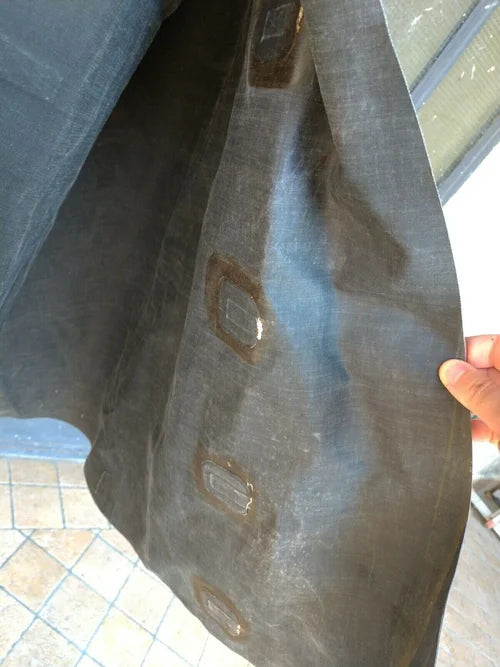La mantella si presenta così come trovata, con qualche segno d'uso visto che la guerra l'ha fatta.